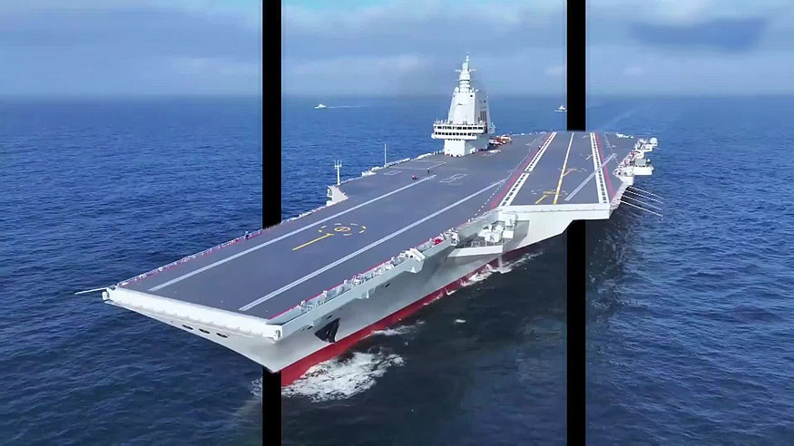2022年6月17日我国第三艘航空母舰下水,命名为“中国人民解放军海军福建舰”,舷号为“18”。福建舰是我国完全自主设计建造的首艘弹射型航空母舰。
