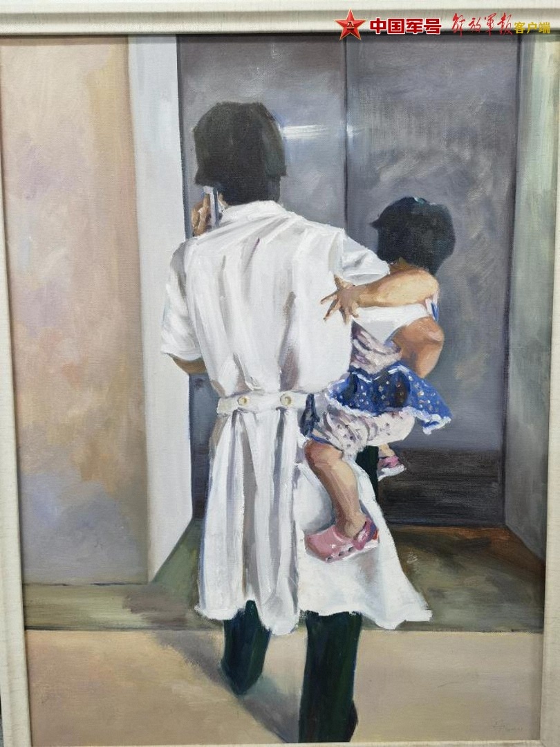 在李慧灵办公室墙上,一副患者绘制的油画记录下这位军医的忙碌状态:身穿白大褂,左手接着电话,右臂被小女孩牢牢拽住。