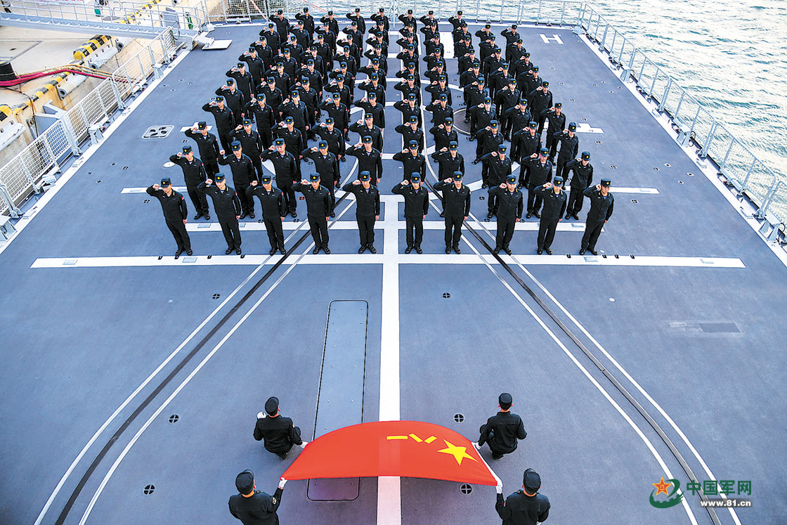 2017年6月,海军南昌舰临时党委召开第一次会议,我国首艘万吨级驱逐舰南昌舰接舰部队正式组建。5个月后,在中共一大会址纪念馆前,鲜红的党旗被徐徐展开,南昌舰的年轻水兵们面向党旗铿锵宣誓。