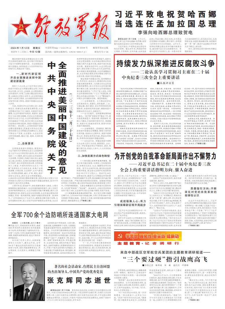 军队是拿枪杆子的,腐败问题在党内不能存身,尤其在我们军队不能存身。军队反腐越有力,就越纯洁、越有战斗力。全军要深入学习贯彻习主席重要讲话精神和习主席关于党的自我革命的重要思想,不断深化对党的自我革命的规律性认识,把党的自我革命的思路举措搞得更加严密,扎实推动全面从严治党、全面从严治军向纵深发展。要紧紧围绕备战打仗,健全防治腐败滋生蔓延的体制机制,坚持不敢腐、不能腐、不想腐一体推进,同时发力、同向发力、综合发力,不断拓展反腐败斗争深度广度,推动防范和治理腐败问题常态化、长效化。领导干部要认真履行管党治党责任,模范遵守党章党规,严守党的政治纪律和政治规矩,带头纯洁党内关系,推动形成清清爽爽的同志关系、规规矩矩的上下级关系,促进政治生态山清水秀。要大力弘扬我党我军光荣传统和优良作风,加强新时代军队廉洁文化建设,积极宣传廉洁理念、廉洁典型,营造崇廉拒腐的良好风尚,为实现党在新时代的强军目标、全面建成世界一流军队提供坚强保证。