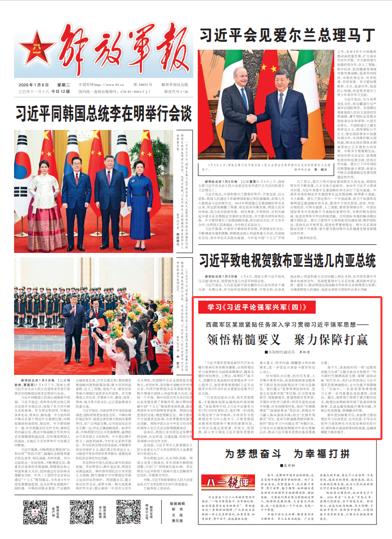 “只有坚定政治立场,筑牢思想根基,才能确保高原运输线始终高效畅通。”该旅领导介绍,《习近平论强军兴军(四)》印发部队后,他们第一时间组织理论骨干深学细研,并将其作为党委理论学习中心组学习、日常思想政治教育和驾驶骨干集训的重要内容,引导官兵通过读原著、学原文、悟原理,深入学习领会习近平强军思想的重大意义、科学内涵、精髓要义和实践要求,进一步坚定大家奋斗强军的信心决心。