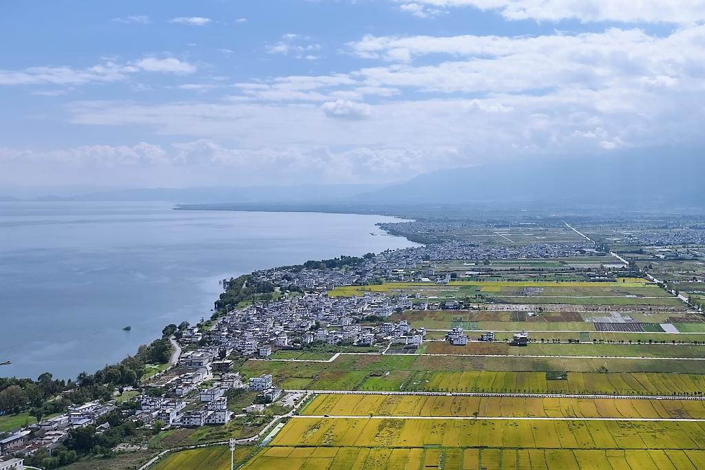 2025年10月23日,古生村与洱海风光(无人机照片)。(赵志伟 摄)