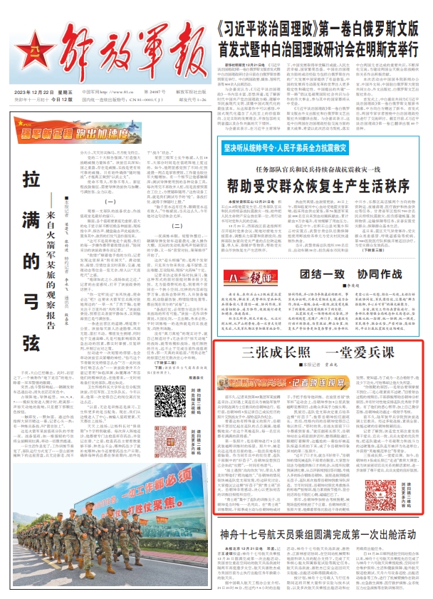 三张成长照,一堂爱兵课。如今,岳朝坤的3张成长照已“走进”教育大课堂,成为该旅密切官兵关系的鲜活素材,进一步浓厚了尊干爱兵、兵兵友爱的良好氛围。