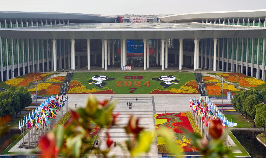 这是11月2日拍摄的第七届中国国际进口博览会举办地——国家会展中心(上海)南广场。新华社记者 刘颖 摄