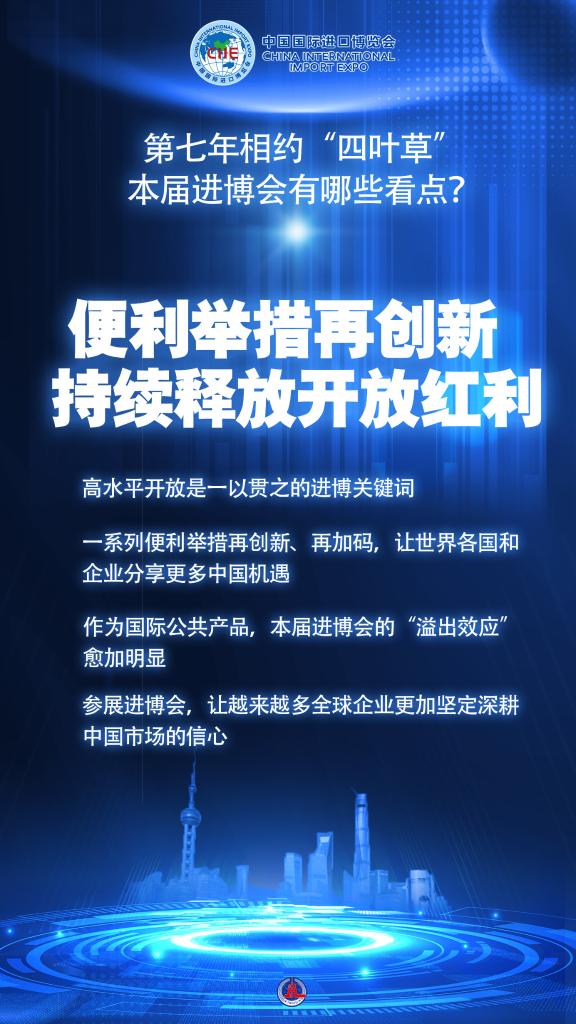 前六届进博会已展出近2500项代表性首发新产品、新技术、新服务,累计意向成交额超过4200亿美元……第七年相约“四叶草”,本届进博会有哪些看点值得期待?
