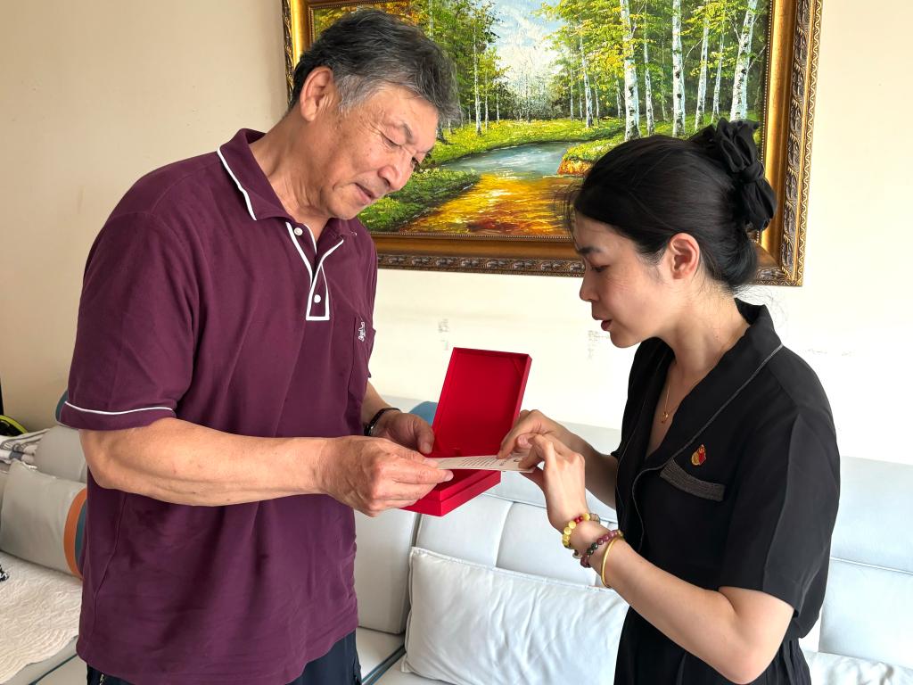 自2021年起,于佳立已连续多年给社区内的老党员颁发“光荣在党50年”纪念章。“每次颁发这些纪念章时,我都能感受到它们沉甸甸的分量。”她说,“我能看到老党员们眼中的光芒,对我而言,既有感动也有鞭策。”