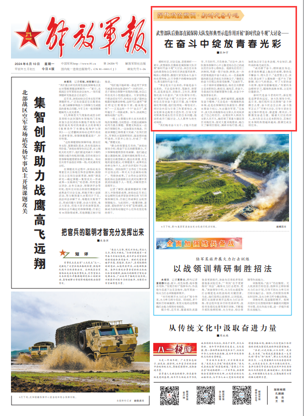 榜样对话、讨论交流、思想辨析……夏日,武警部队后勤部直属保障大队开展“新时代奋斗观”大讨论,来自官兵身边的典型结合自身经历讲述强军故事、畅谈心得感悟,激励大家发扬永久奋斗的光荣传统,以只争朝夕的精神加倍努力,勇当新时代奋斗者。