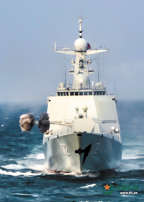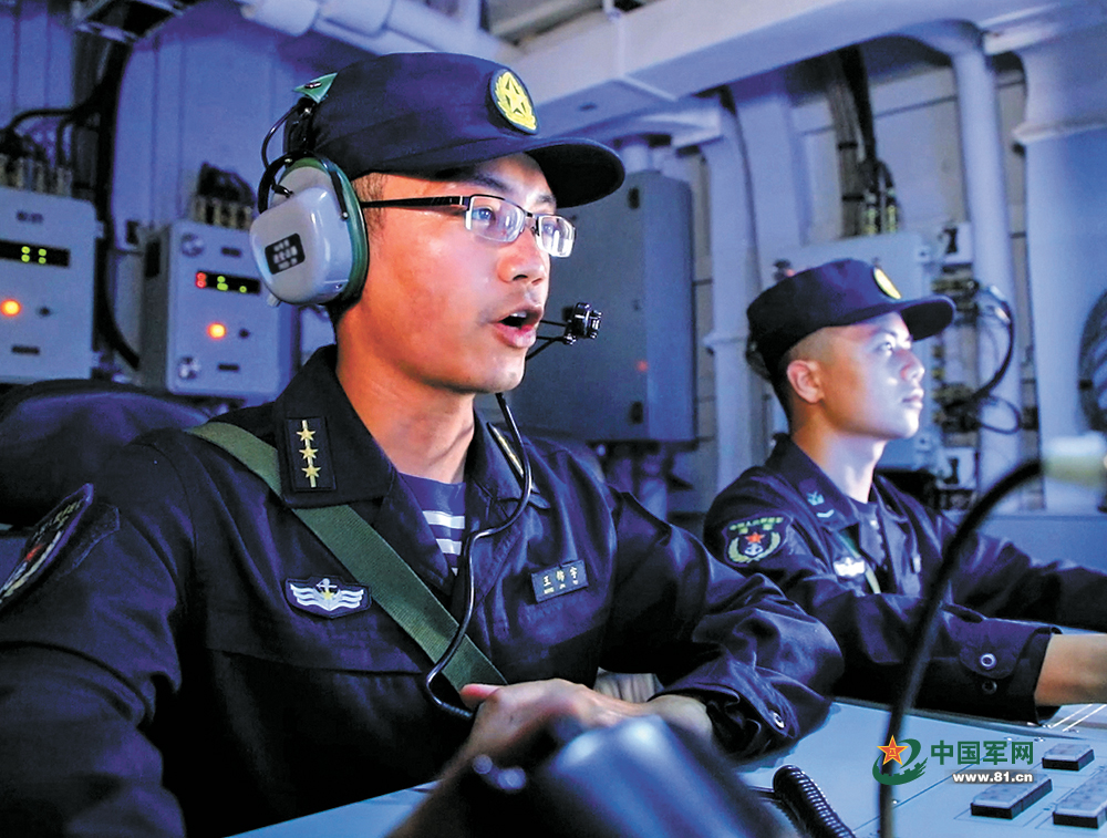 “某海域发现可疑目标!”海上特情传来,参训某舰快速向目标海域机动。作战室内,键盘声、口令声此起彼伏。在编队预警探测体系支撑下,战舰武备系统很快锁定目标。一时间,海天之间炮声隆隆、硝烟弥漫……