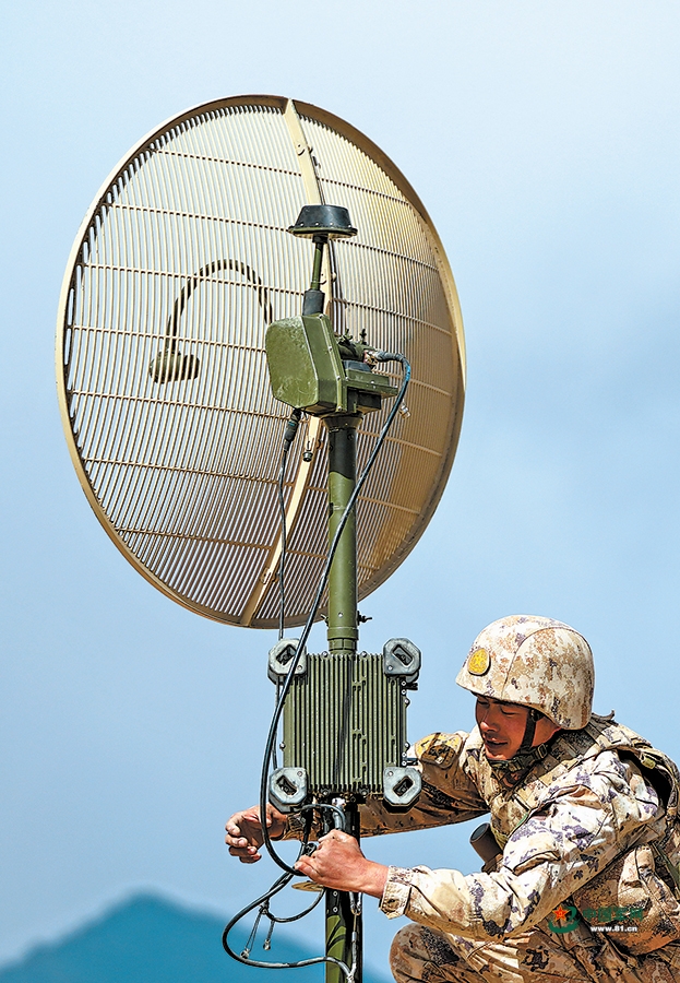 途经某地,官兵正在进行短暂休整时,突然接到新的导调指令:“无线电遭不明信号源干扰!”官兵快速关闭无线通信电台,启用备用通信手段,确保机动途中通信指挥畅通。