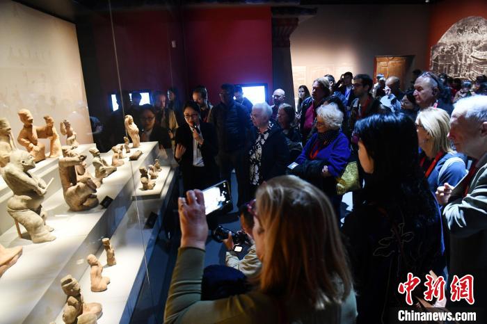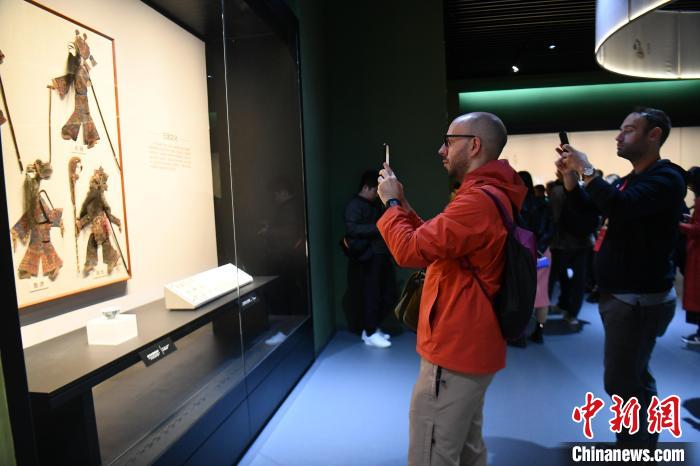 图为代表走进四川博物院参观皮影人物。中新社记者 张浪 摄