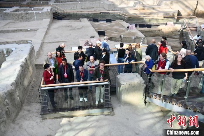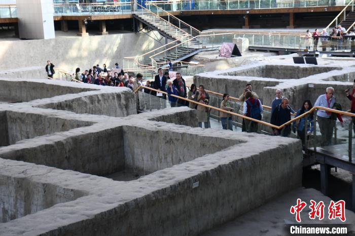 图为代表走进成都金沙遗址博物馆参观遗迹馆。中新社记者 张浪 摄