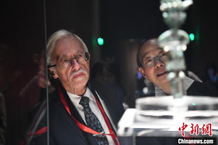 图为代表走进成都金沙遗址博物馆参观“铜立人”。中新社记者 张浪 摄