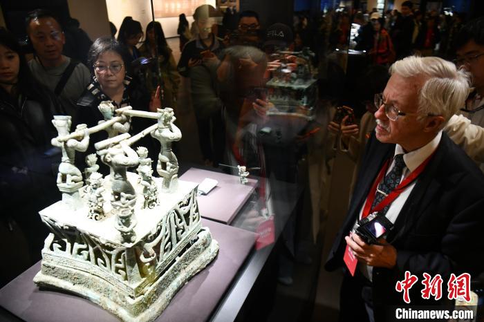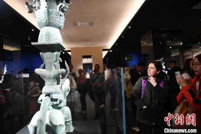 图为专家学者在三星堆博物馆参观青铜器物。中新社记者 张浪 摄