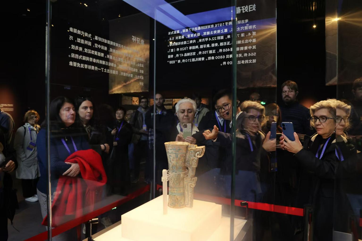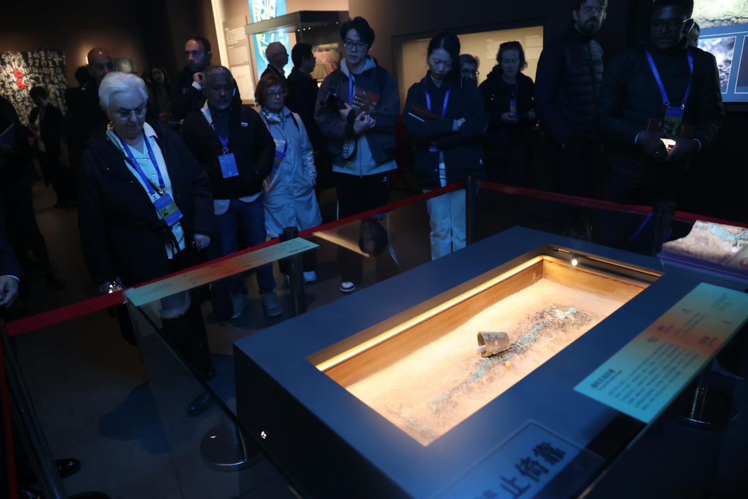 11月6日上午,首届世界古典学大会推出的“考古与中华文明溯源展”在中国考古博物馆开展。300余位中外嘉宾参观出土文物,体验编钟演奏。该展是本届世界古典学大会推出的配套活动之一。