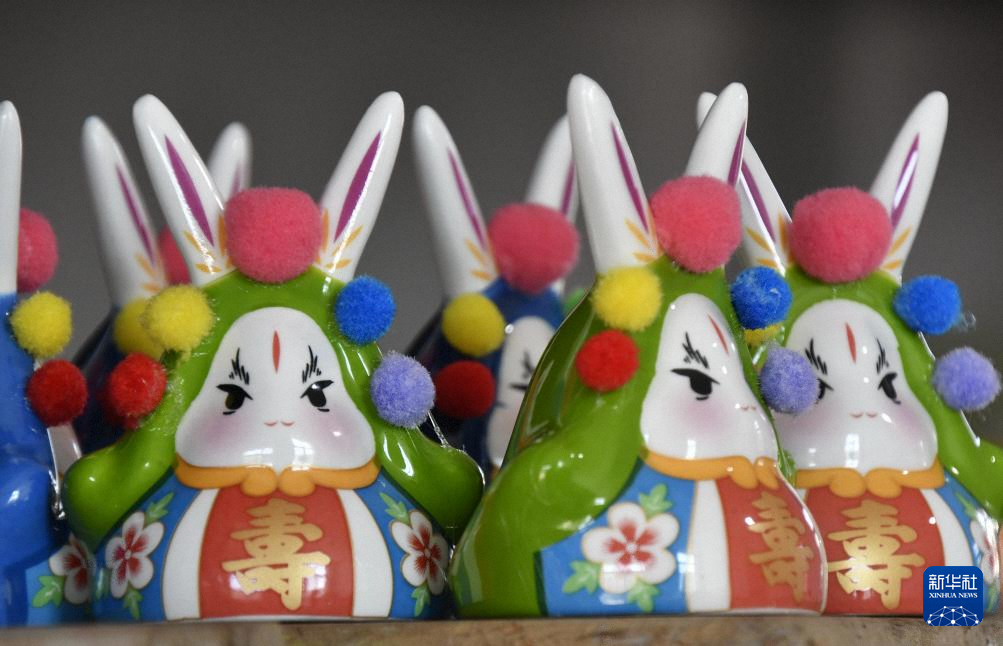 这是8月6日在怀柔区桥梓镇禧宝露文化中心拍摄的北京传统吉祥物兔爷文创产品。新华社记者 李欣 摄