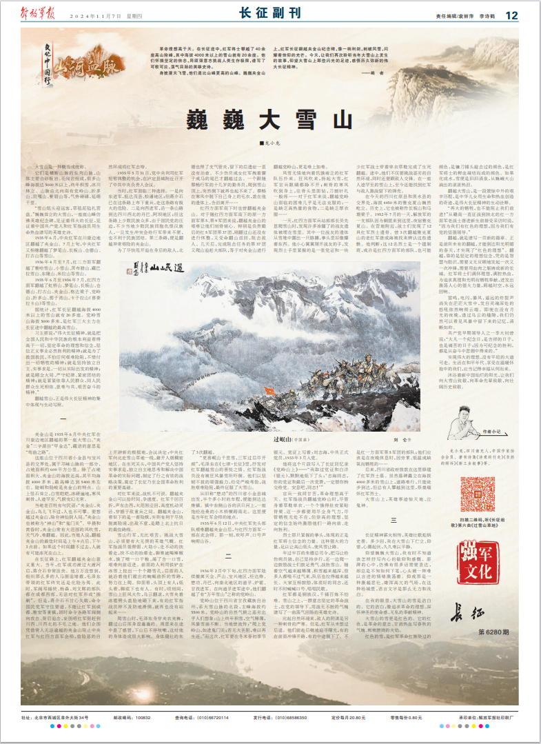 长征精神薪火相传,英雄壮歌彪炳史册。多少回,我在大雪山下伫立、仰望,心潮起伏,久久难以平静。