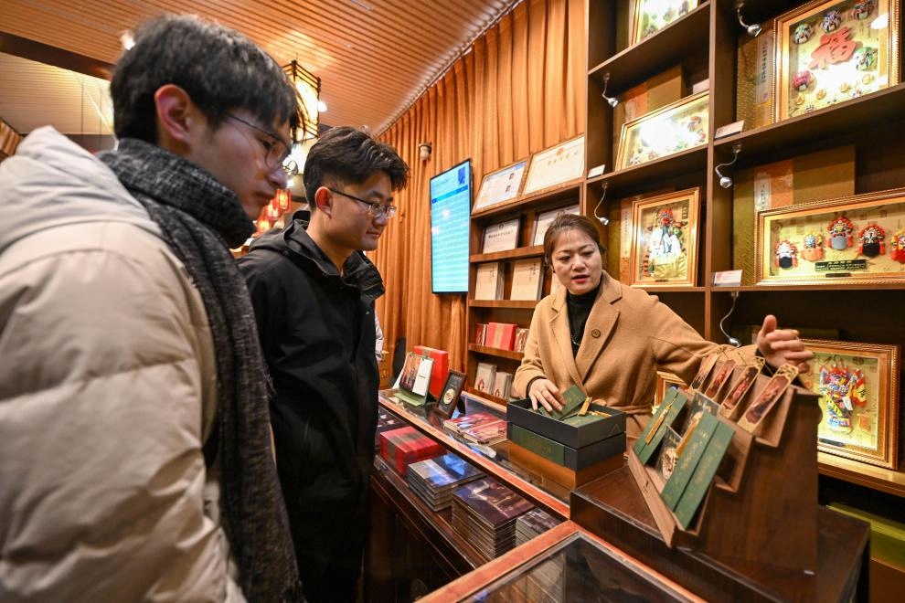 1月20日,游客在天津古文化街泥人张世家选购文创产品。新华社记者 孙凡越 摄