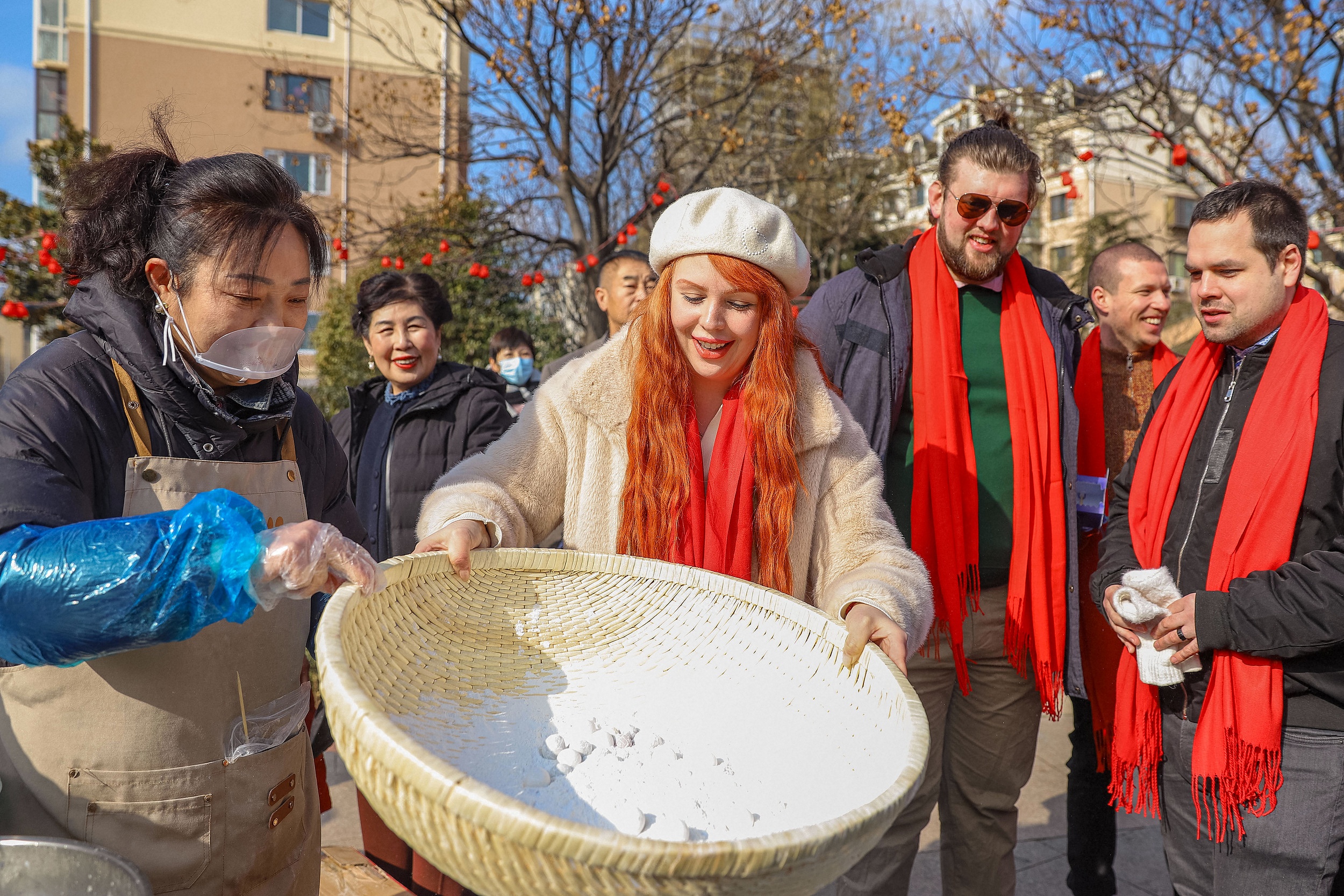 日前,外国青年在山东青岛某社区体验制作元宵。(图片来源:视觉中国)