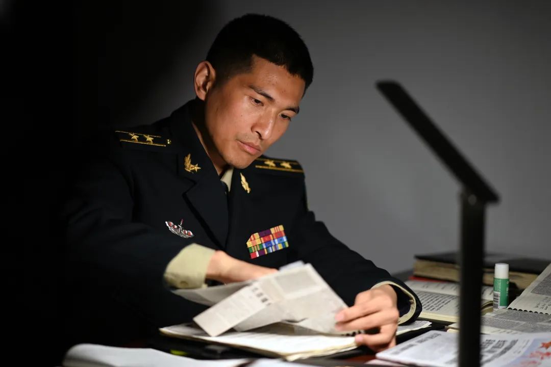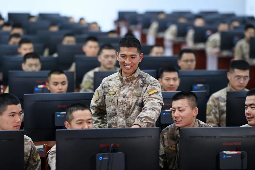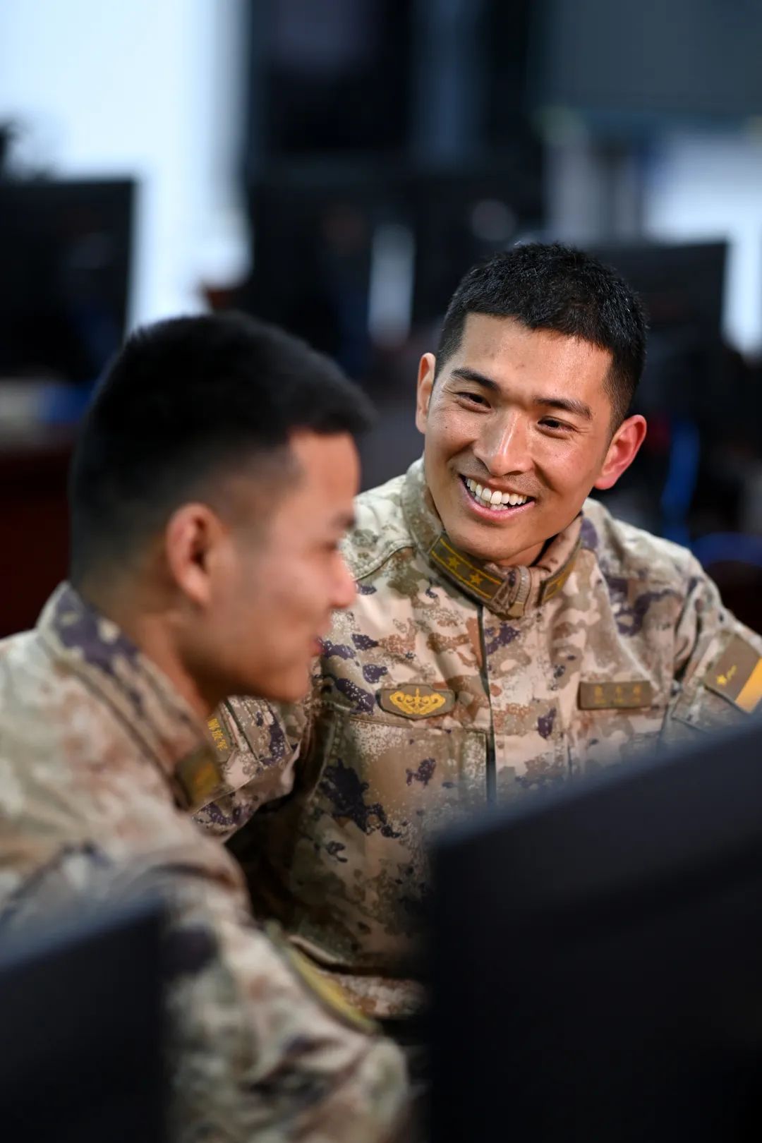 ▲训练间隙,张平坤为官兵宣讲党的创新理论
