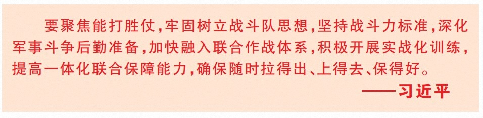保障好部队,还须强自身。“要聚焦能打胜仗,牢固树立战斗队思想,坚持战斗力标准,深化军事斗争后勤准备,加快融入联合作战体系,积极开展实战化训练,提高一体化联合保障能力,确保随时拉得出、上得去、保得好。”认真学习领会习主席重要指示精神,该中心近年来紧密结合单位和任务实际,蹚出一条训练新路。