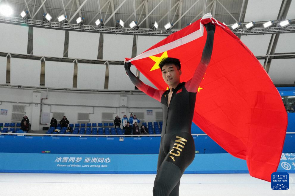 当日,在哈尔滨举行的第九届亚冬会速度滑冰男子100米决赛中,中国选手高亭宇获得冠军。