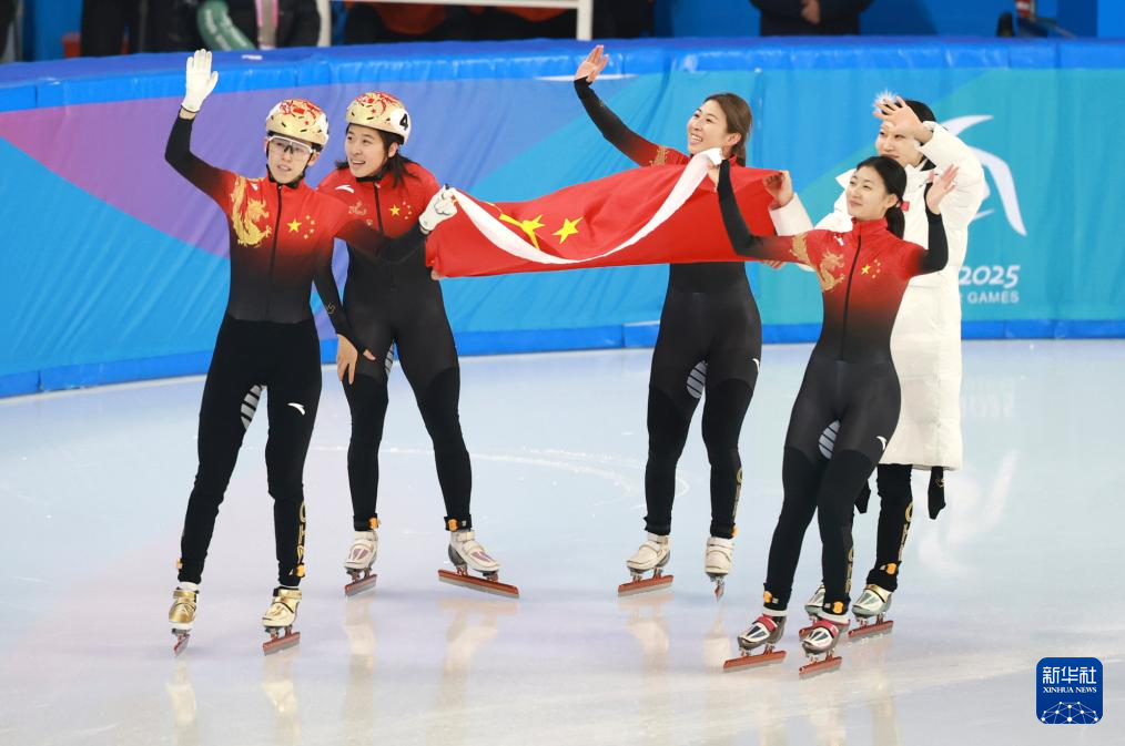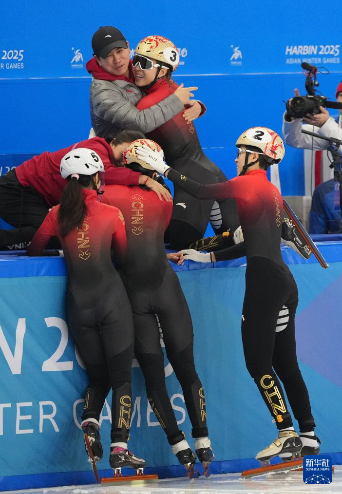 当日,第九届亚冬会短道速滑女子3000米接力A组决赛在哈尔滨举行,中国队夺得冠军。