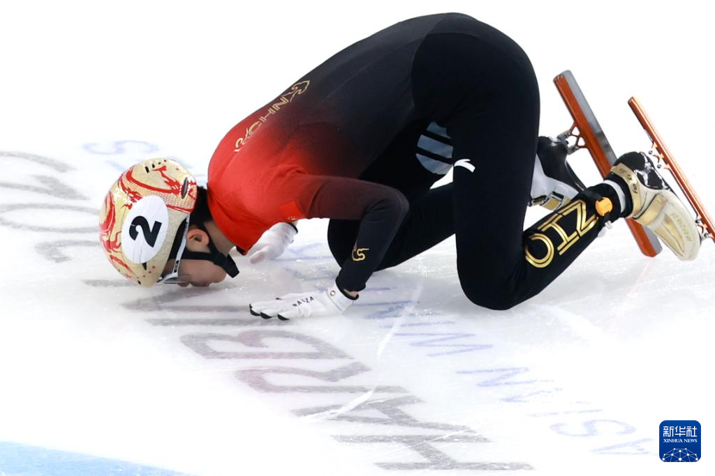 2月9日,中国队选手范可新赛后亲吻冰面。