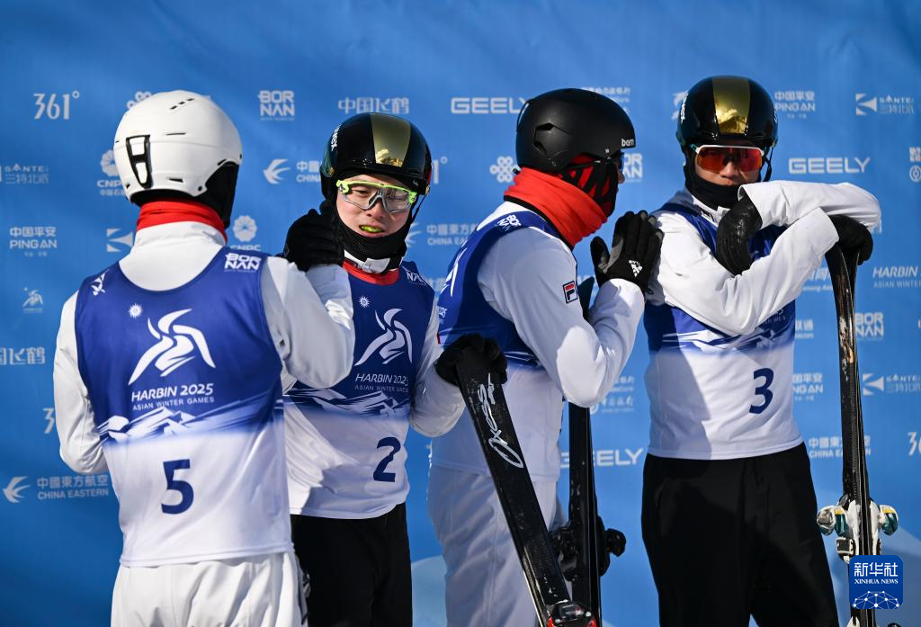 当日,在亚布力举行的第九届亚冬会自由式滑雪男子个人空中技巧决赛中,中国选手李心鹏、杨龙啸、齐广璞包揽冠、亚、季军。
