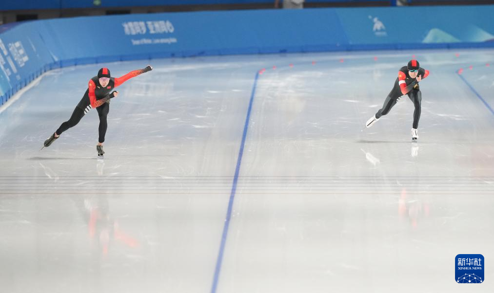 2月9日,吴宇(左)和哈那哈提·木哈买提在比赛中。