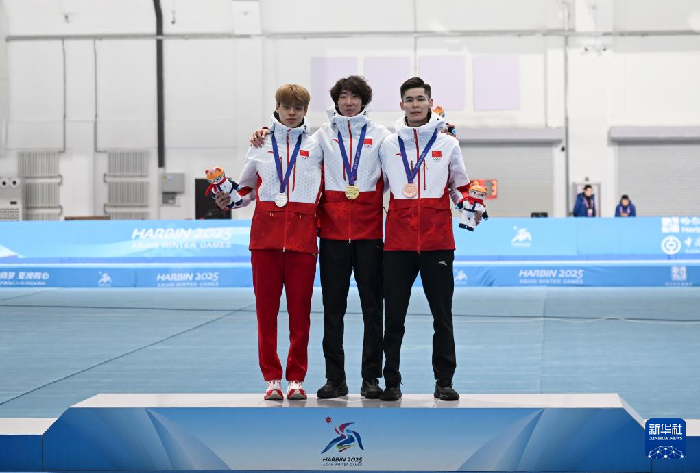 2月9日,冠军吴宇、亚军刘瀚彬和季军哈那哈提·木哈买提在颁奖仪式上。