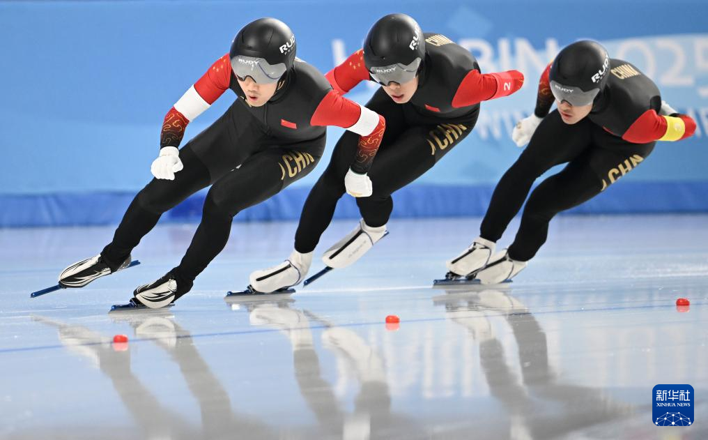 当日,第九届亚冬会速度滑冰男子短距离团体追逐赛在哈尔滨举行。中国队获得冠军。