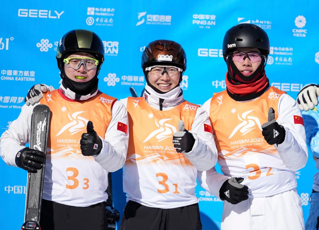 在亚布力,刚夺得本届亚冬会自由式滑雪空中技巧男子个人冠军的20岁小将李心鹏,携手34岁的北京冬奥会冠军徐梦桃和齐广璞,轻松摘得空中技巧混合团体金牌。徐梦桃说:“混合团体赛代表着一个队伍的整体实力,它同时展现了一个项目当中男女运动员共同的水平,很荣幸我们能拿到冠军。”