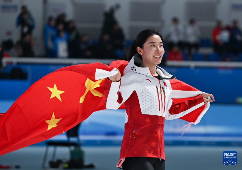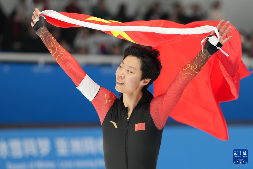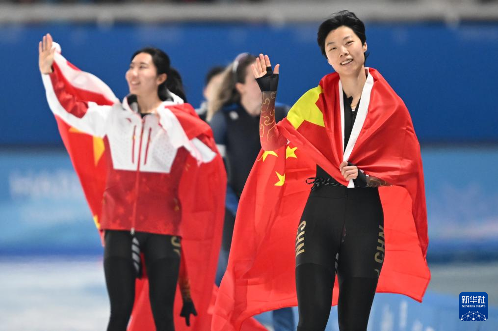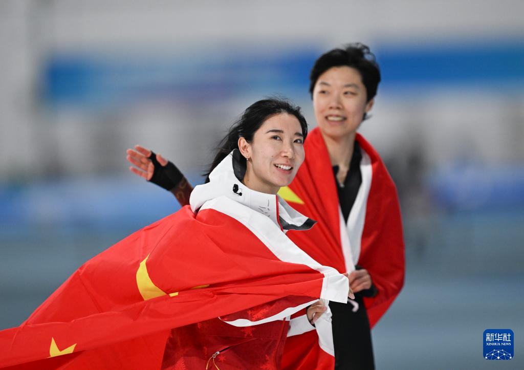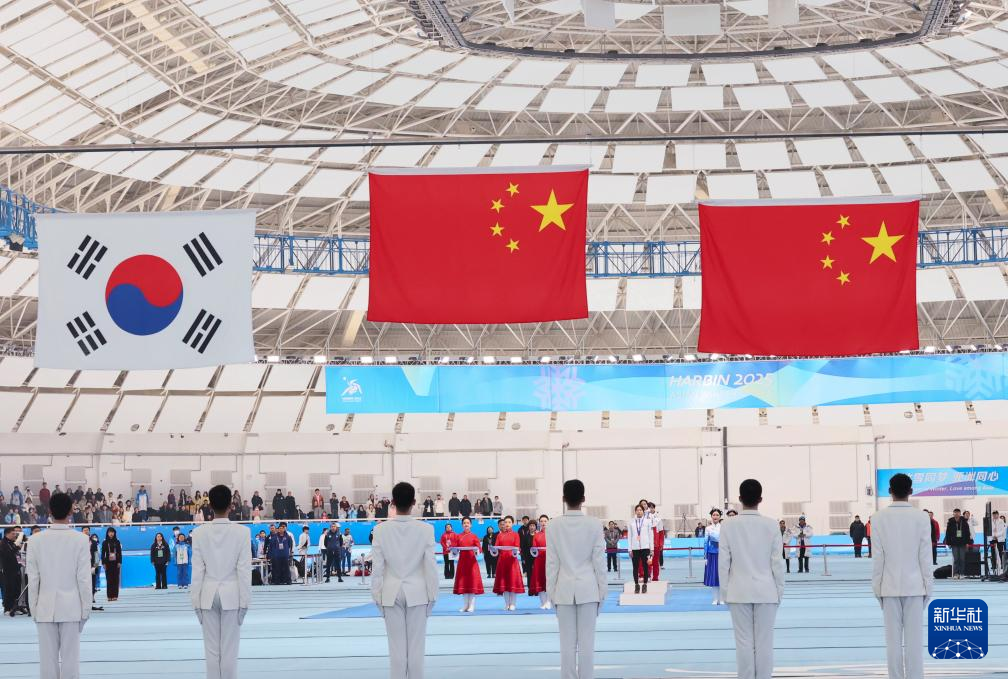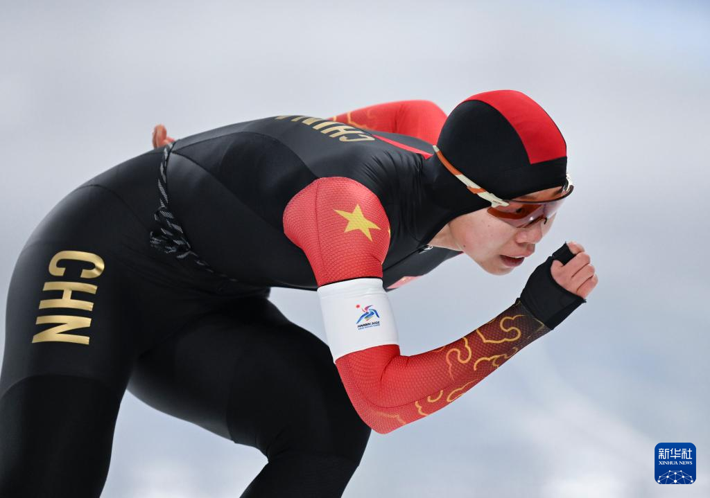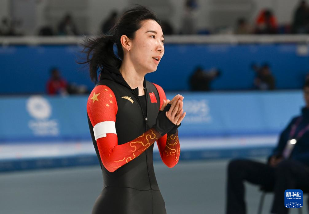 当日,第九届亚冬会速度滑冰女子1000米决赛在哈尔滨举行。中国选手韩梅、殷琦分别获得冠军、亚军。