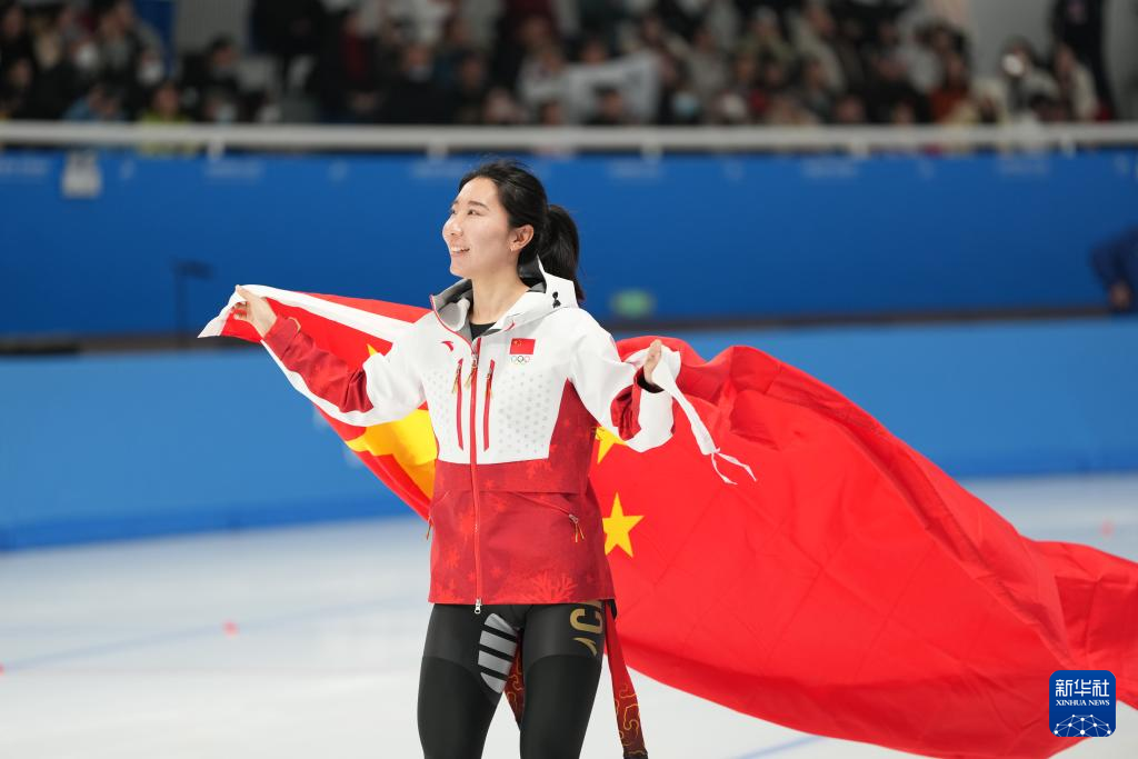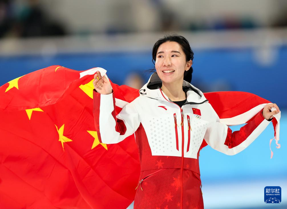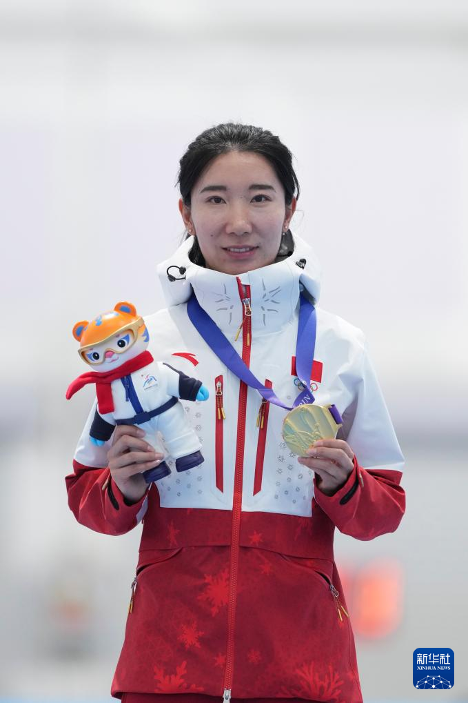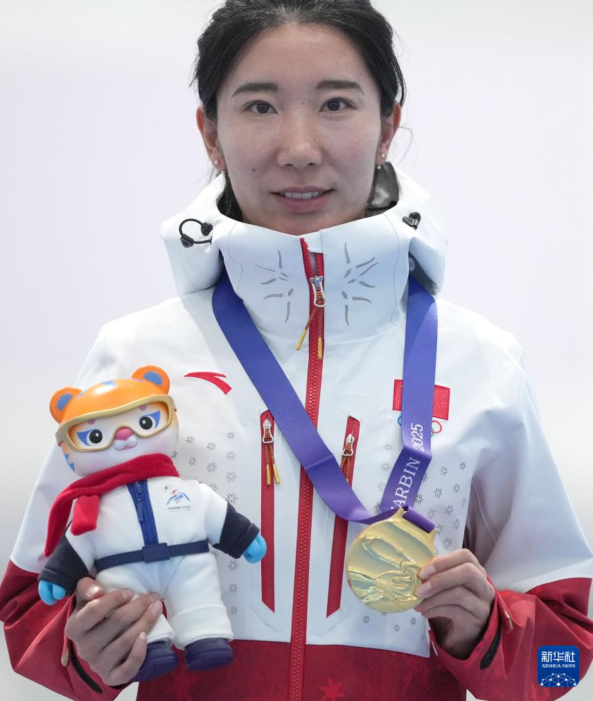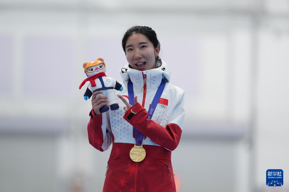 2月11日,冠军中国选手韩梅在颁奖仪式上。