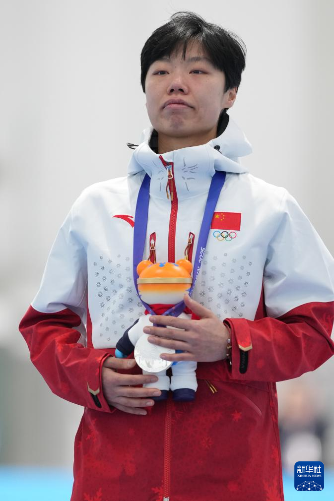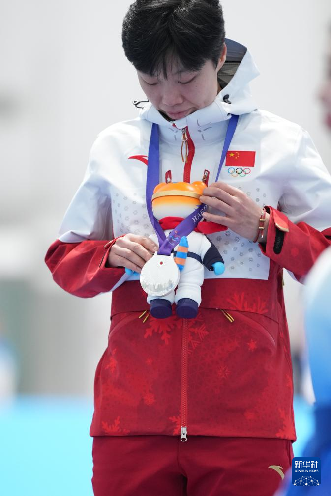 2月11日,亚军中国选手殷琦在颁奖仪式上。