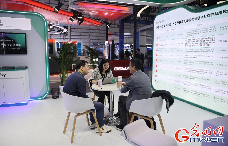 2025年11月6日,卡巴斯基展台工作人员向游客介绍产品特点。
