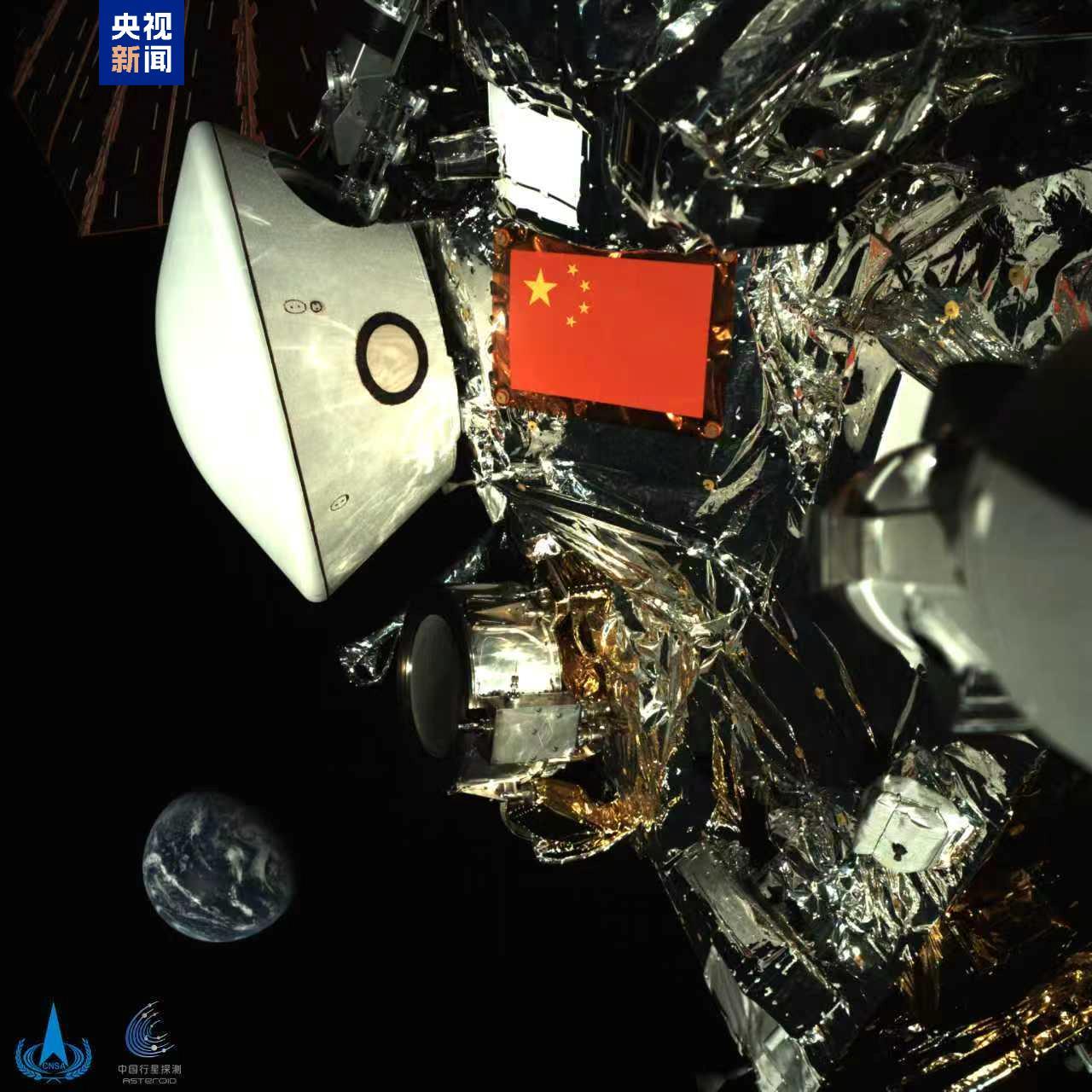 探测器上的五星红旗与地球同框