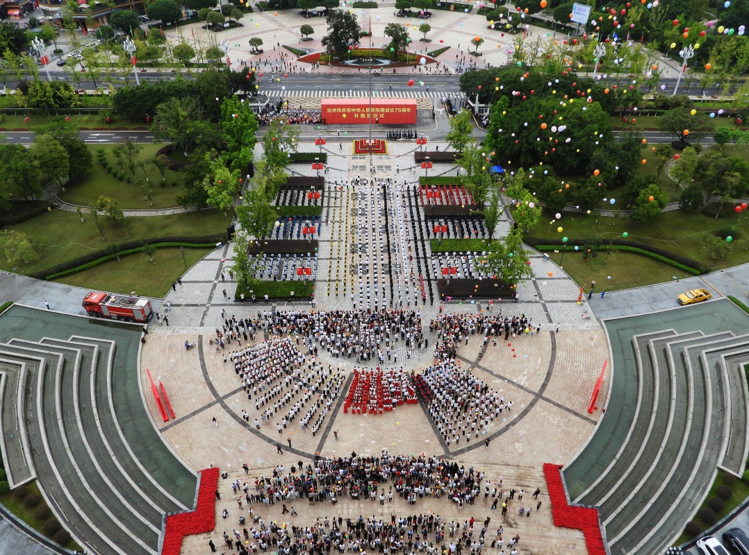 10月1日在四川省达州市人民广场拍摄的升旗仪式。