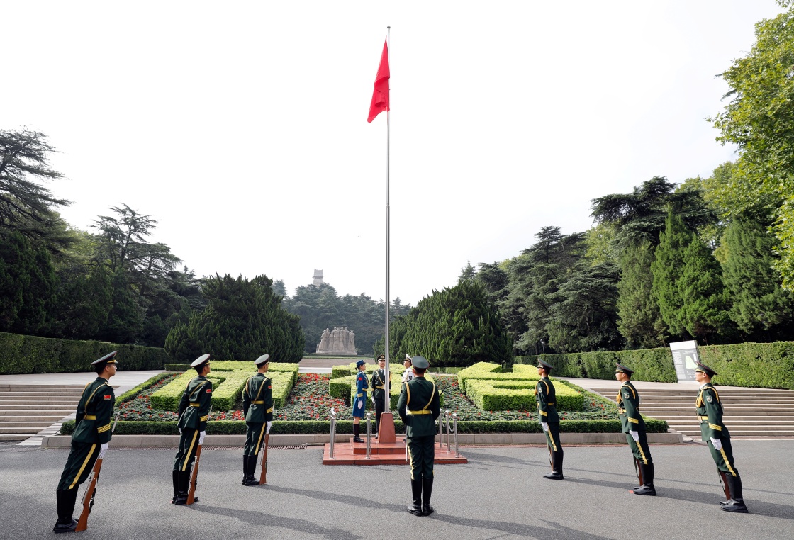 10月1日,南京雨花台烈士陵园举行升旗仪式。