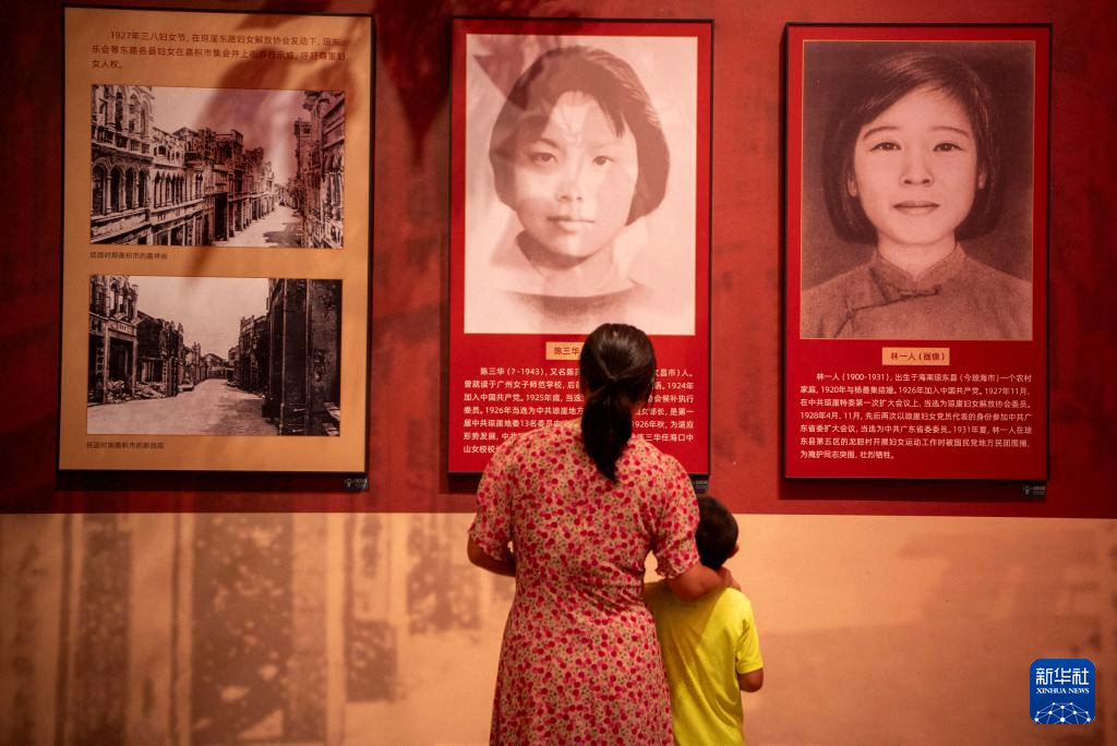 10月2日,家长带着孩子在海南省琼海市红色娘子军纪念园参观。新华社发(蒙钟德摄)