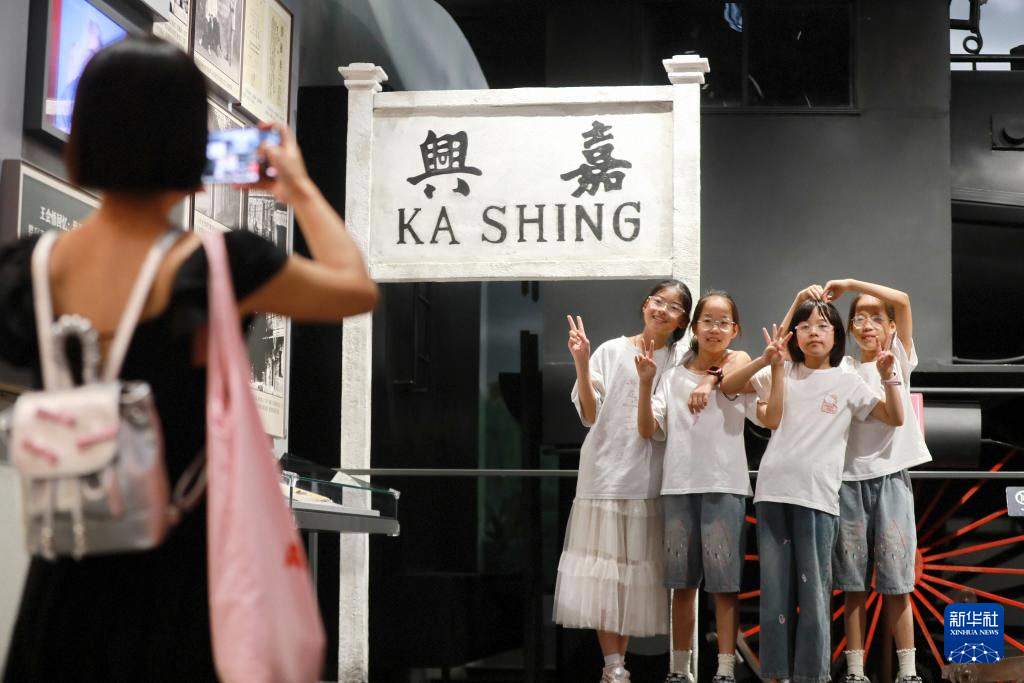 10月7日,小朋友在浙江省嘉兴市南湖革命纪念馆参观时留影。新华社发(金鹏摄)
