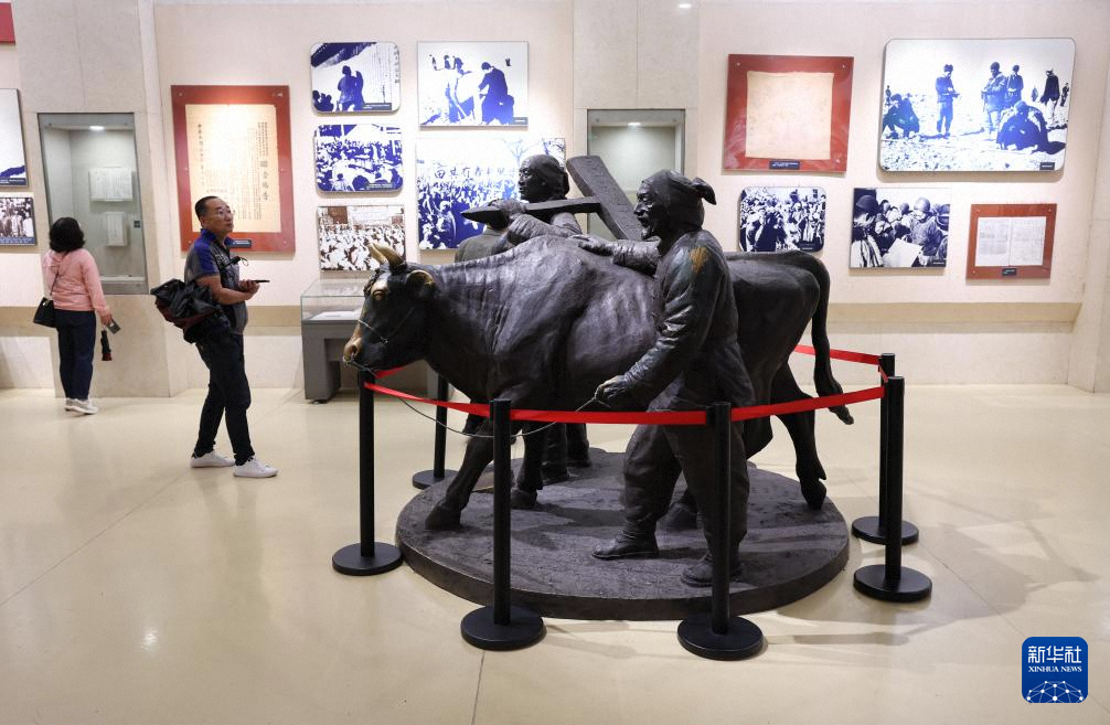 10月8日,游客在河北省平山县西柏坡纪念馆参观。新华社发(梁子栋摄)