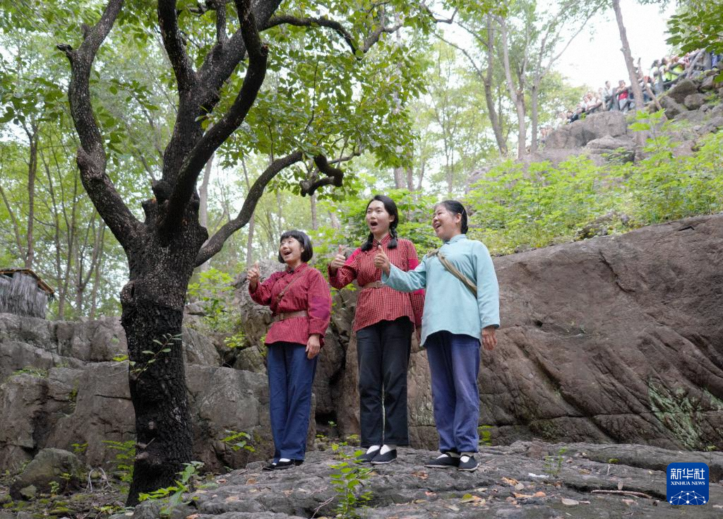 10月3日在位于山东省临沂市沂南县的山东红嫂家乡旅游区拍摄的沉浸式体验项目《重走支前路》中的一个环节。新华社发(尹君摄)