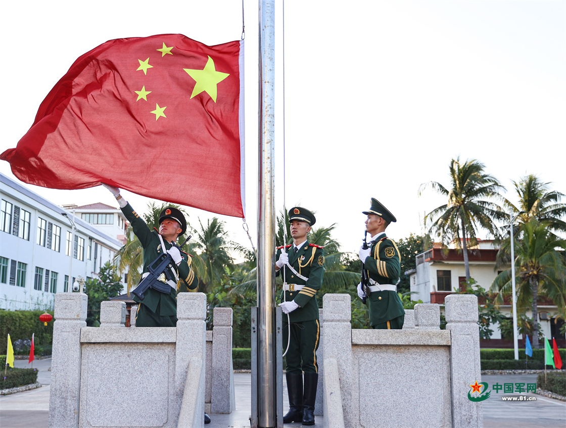“旗杆高19.46米,行进到旗杆需走128步……”闭上眼,深呼吸,这些细节在中士黄巧的脑海闪过。清晨,当第一缕阳光洒向永兴岛,三沙市政府办公大楼前广场上,守岛军民齐聚一堂,共同见证五星红旗升起的时刻。