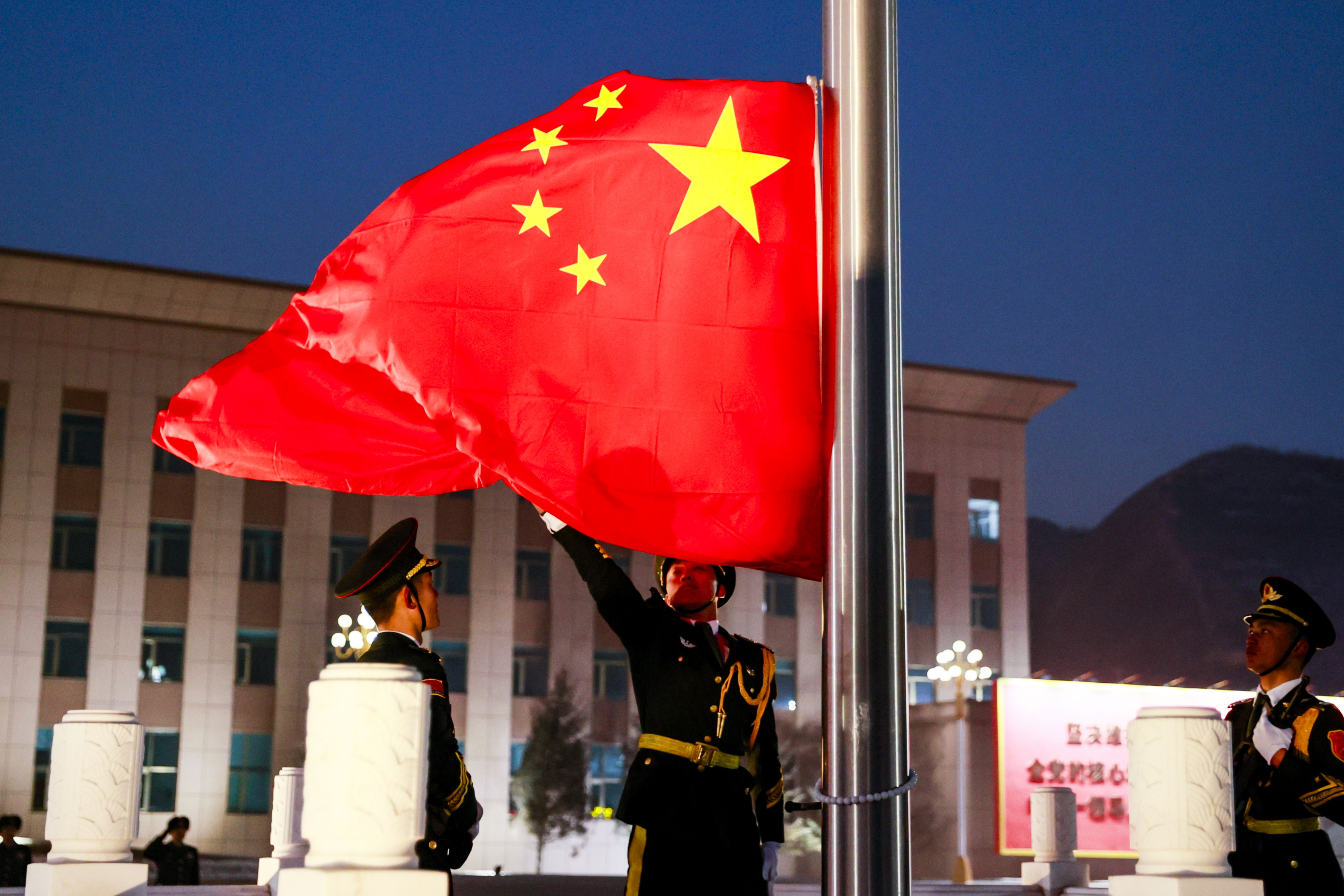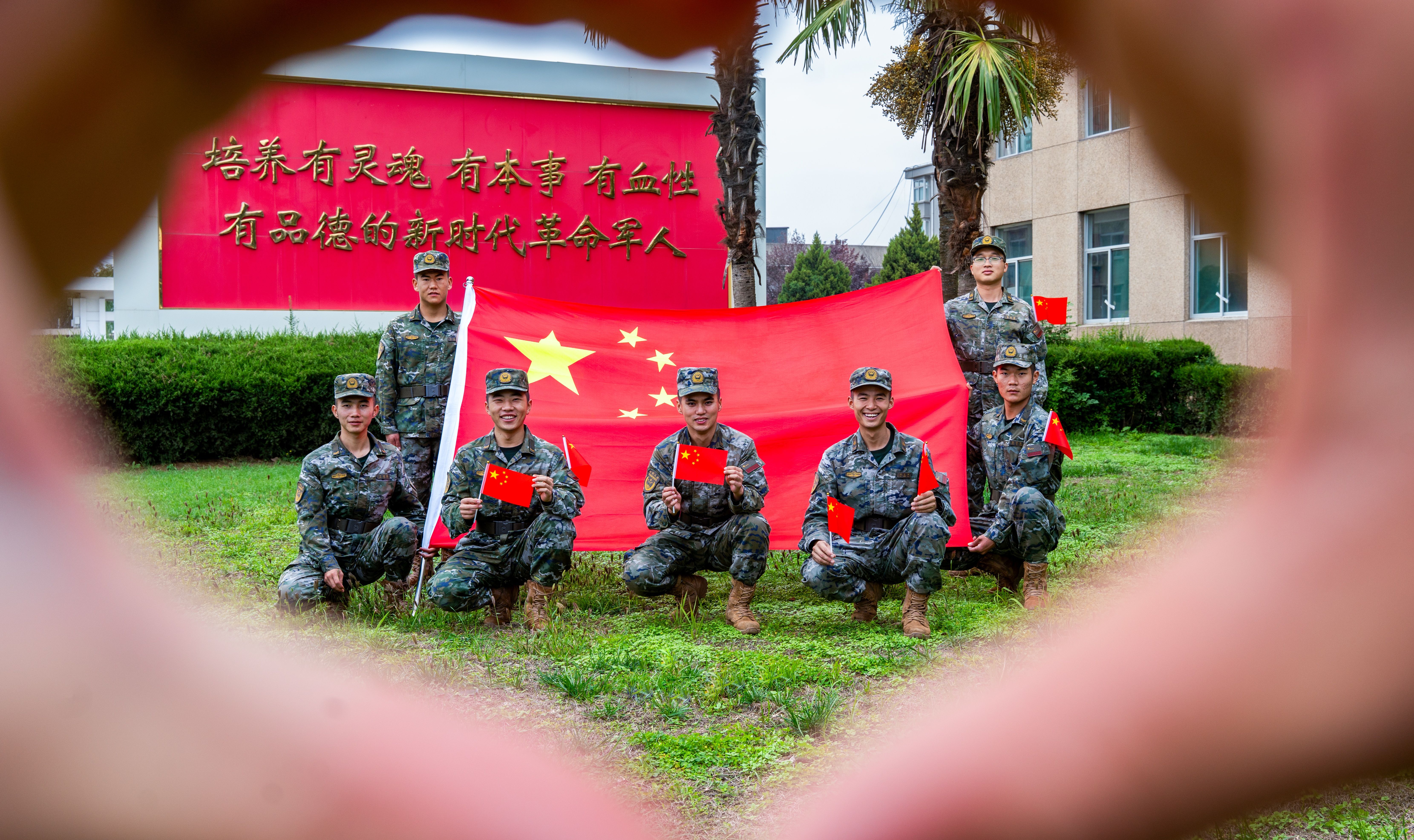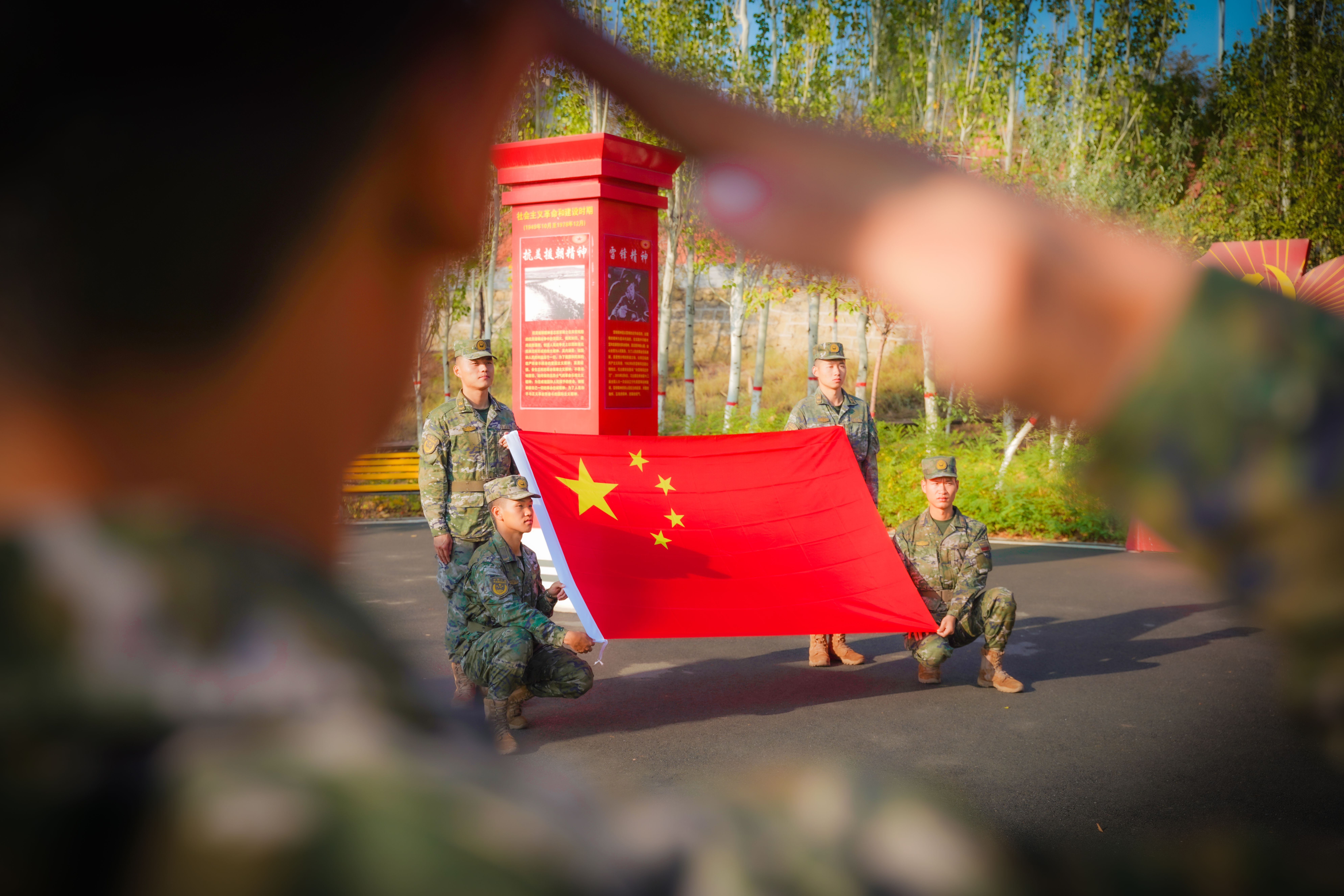 以国旗为景