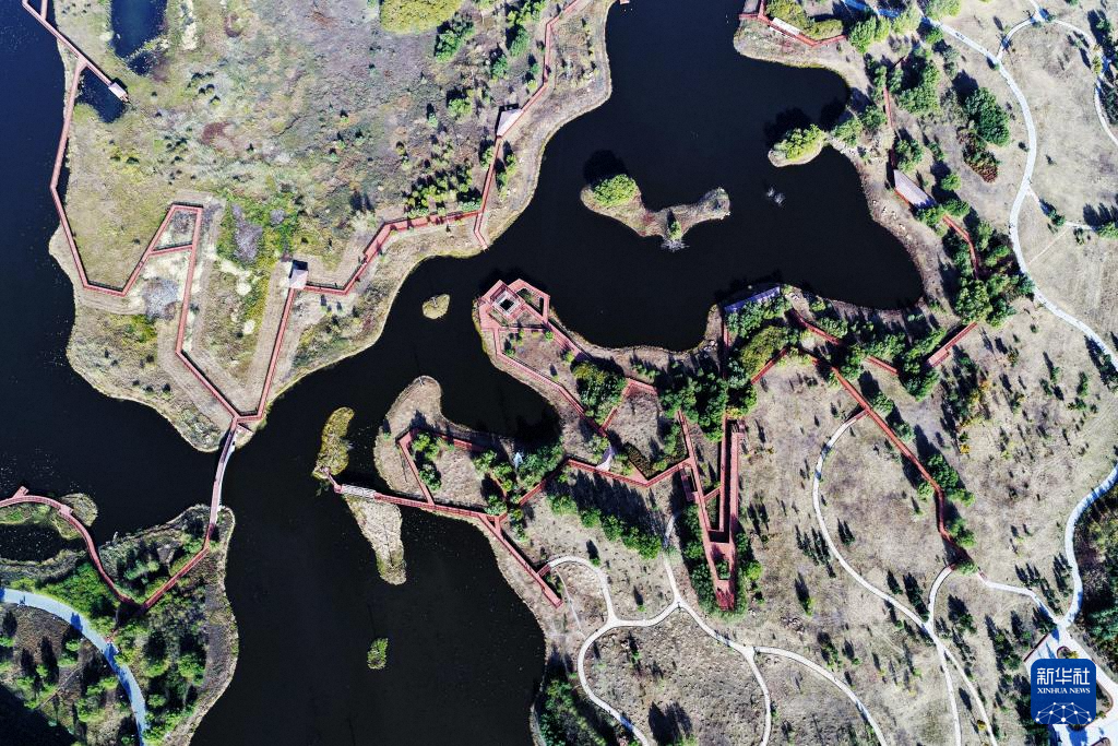 这是10月7日拍摄的哈尔滨太阳岛国家湿地公园景色(无人机照片)。