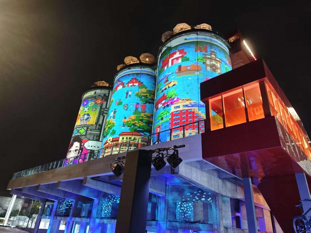 在上海徐汇滨江西岸梦中心,百年水泥厂的“大砼仓”化身为“赛博建筑”。新华社记者张梦洁摄
