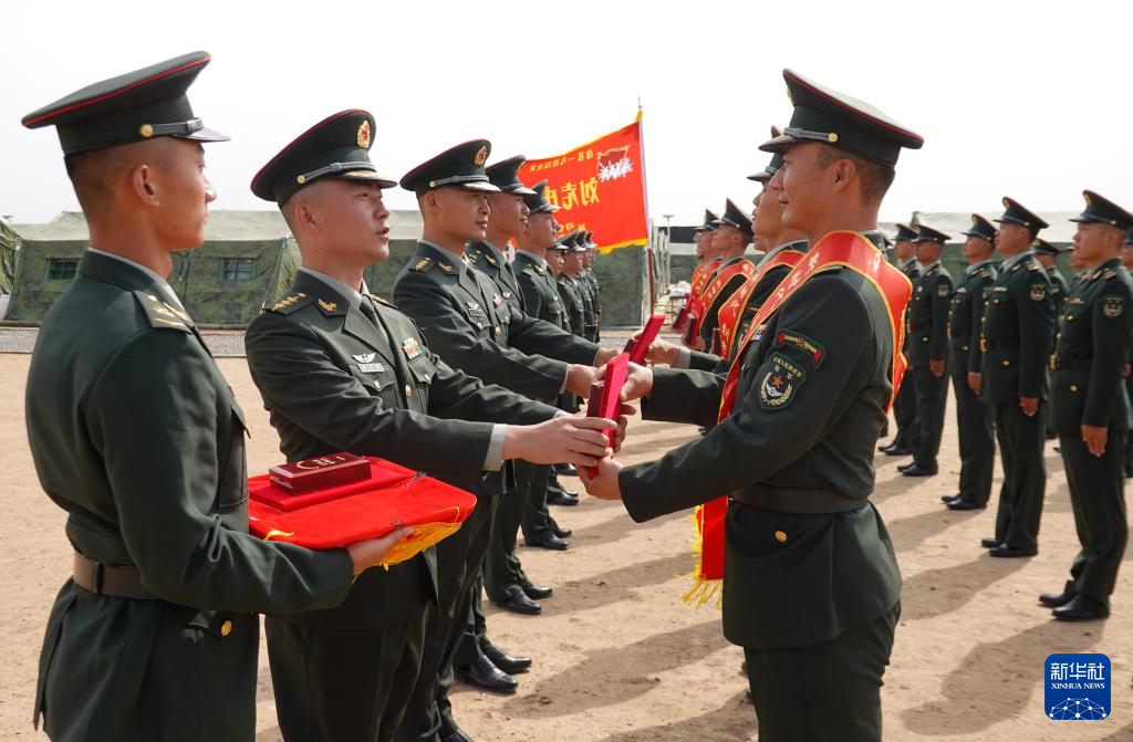陆军某旅“刘老庄连”举行“新时代刘老庄八十二勇士”颁授仪式(2025年9月15日摄)。新华社记者 张永进 摄