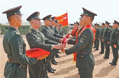9月15日,“刘老庄连”举行“新时代刘老庄八十二勇士”颁授仪式,连队干部为新当选的勇士颁发证书。张永进 摄