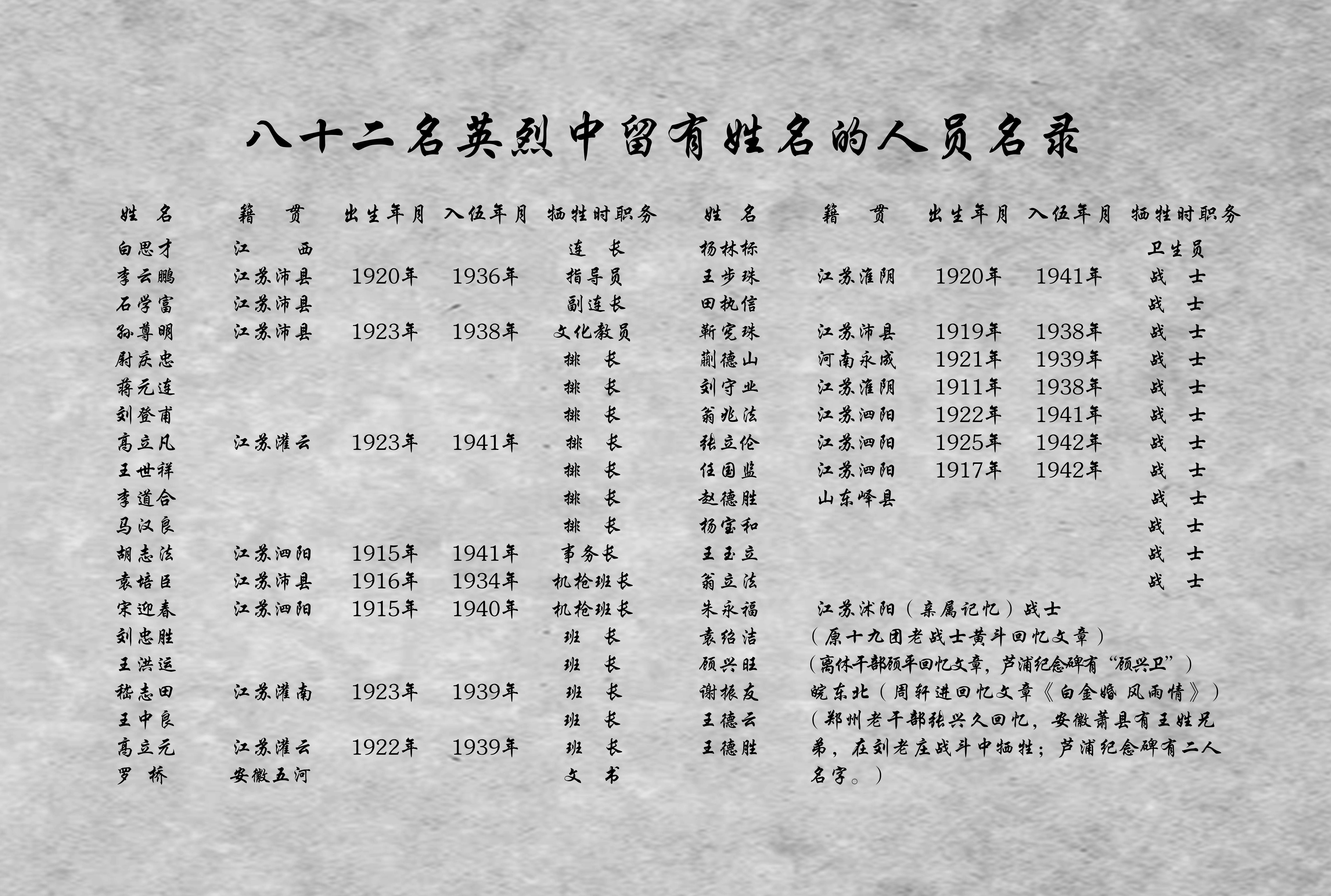 八十二烈士中追溯到留有姓名的人员。(“刘老庄连”史馆供图。)